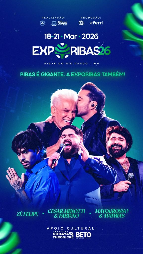 Com o lema de capital verde e do desenvolvimento sustentável, a ExpoRibas 2026 promete ser um grande encontro de negócios, inovação e cultura, reunindo expositores, palestrantes, atrações musicais e o tradicional rodeio profissional. A feira consolida Ribas do Rio Pardo como referência no novo cenário econômico e produtivo de Mato Grosso do Sul.