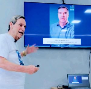 Ao final da palestra, o evento terminou em clima de confraternização, com os participantes cantando parabéns a Bosco Martins, que completa “60+ alguns anos” no dia 27 de abril. O bolo foi um presente do presidente Lupércio Marques.
